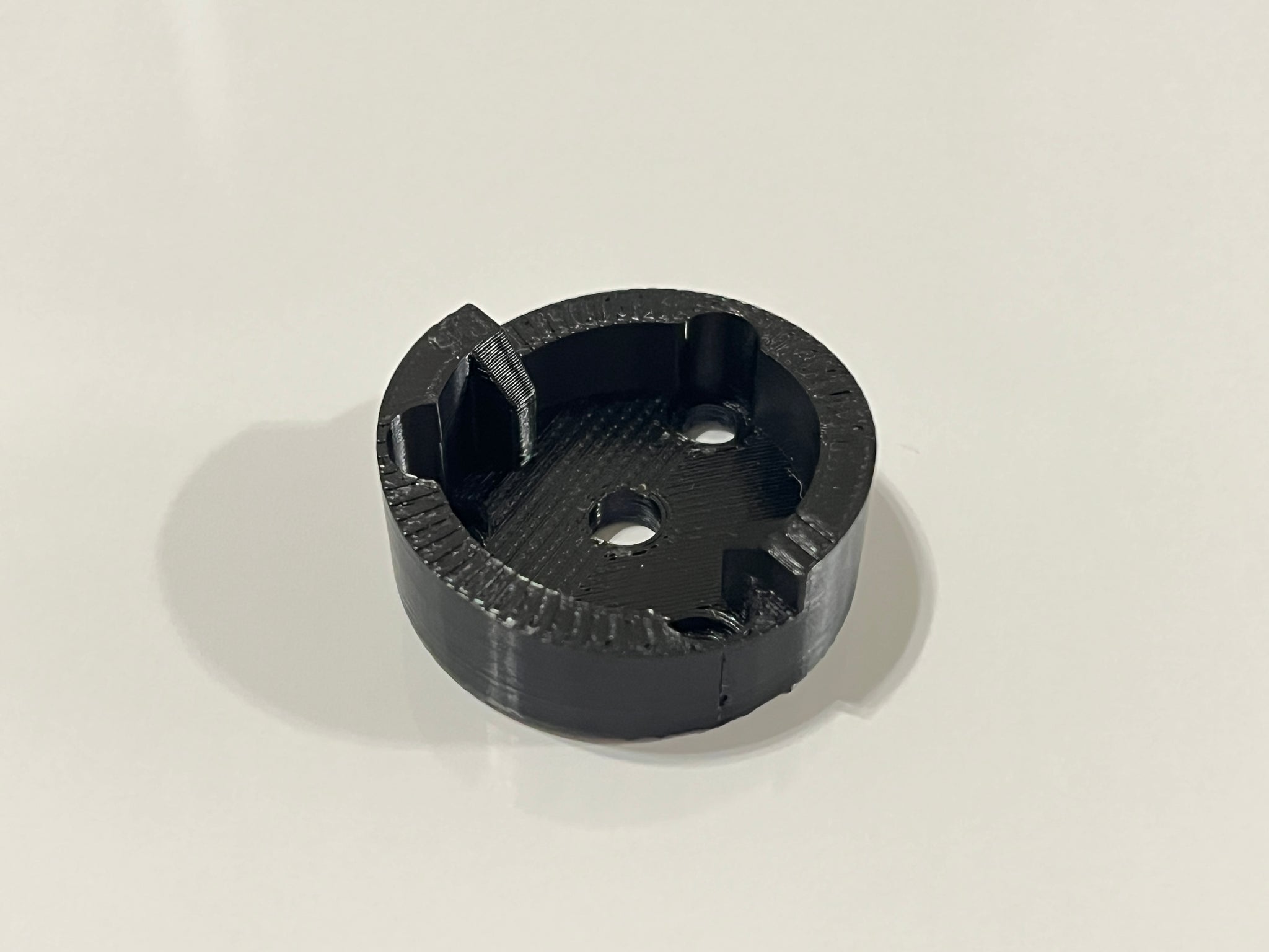 A replacement part for lost or broken One-Touch muffler base.This item is printed in BLACK PETG and is modeled to replicate the original.